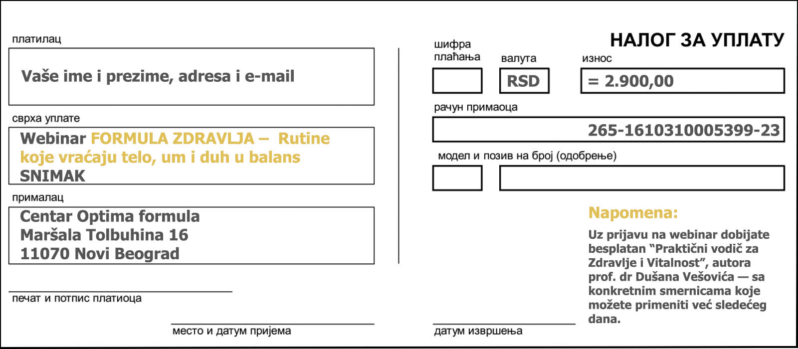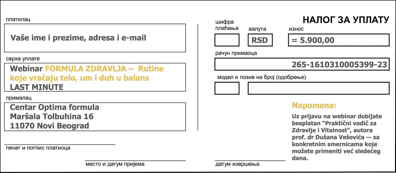 Napomena: iznos uplaćujete prema izabranom paketu!